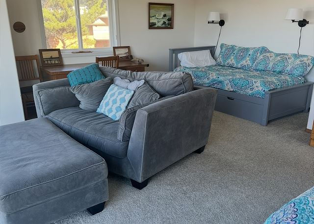 This house in particular is a great fit for our family of four, and this last visit we had my mother-in-law stay and she was very comfortable on the main level room with the bathroom right there. The house is bright, homey, comfortable, and that upper bedroom ocean view is stunning! Good beach access, and right at the end of the Yachats trail, which I love. 2 miles from town, a perfect jog/walk.