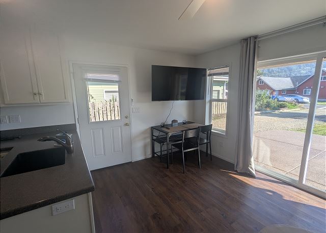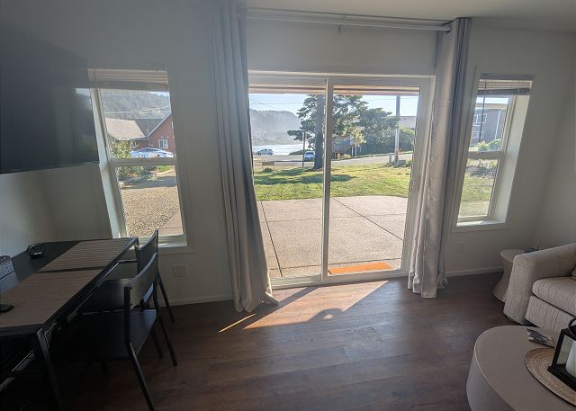 New rental! The Tide & Seek is a charming Ocean View Cottage in Yachats, across a quiet street from pounding surf, or the tide pools and small secluded beach areas, when the tide is out! Stunning views of Cape Perpetua and the ocean surf are seen from kitchen, dining room, and living room. The location is perfect for short strolls to shops and restaurants in downtown Yachats on the city trail. You can also walk the 804 Trail, which goes by the cottage, and take it to the end, where it stops North of town, and continues on with 6 miles of sandy beach towards Waldport. Or you can look at the tide pools at Smelt Sands Beach. The cottage has a large grassy back yard, and BBQ that you can use during the summer months. So, whether you are in the cottage during the bright sunny clear days of summer, or watching an amazing winter storm, the Ocean and downtown Yachats could not be much closer!!